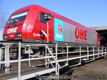 Anlässlich der Hansetage war am 08.06.2008 war die Diesellok OHE 270081 im Lokschuppen zu Gast. Die nachfolgenden Bilder zeigen die Lok auf der Drehscheibe und einige Aufnahmen des Innenlebens.
