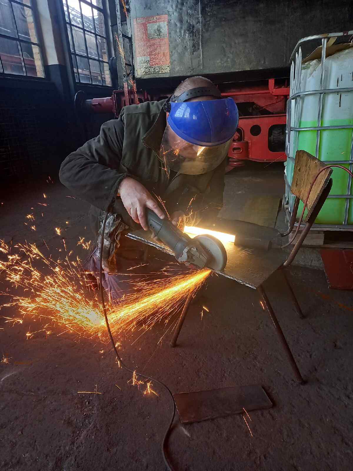 Außerdem wurde wieder am Tender der 50 3570 gebaut. Hier wurden noch einige Bleche an der Stirnseite erneuert, die öfter mal durchrosten. Eine bekannte Schwachstelle bei den Tendern. Wir hoffen, dass die Reparatur des Fahrzeugs nun endlich abgeschlossen werden kann. Während einer die Bleche vorrichtet, schweißen andere sie ein.
