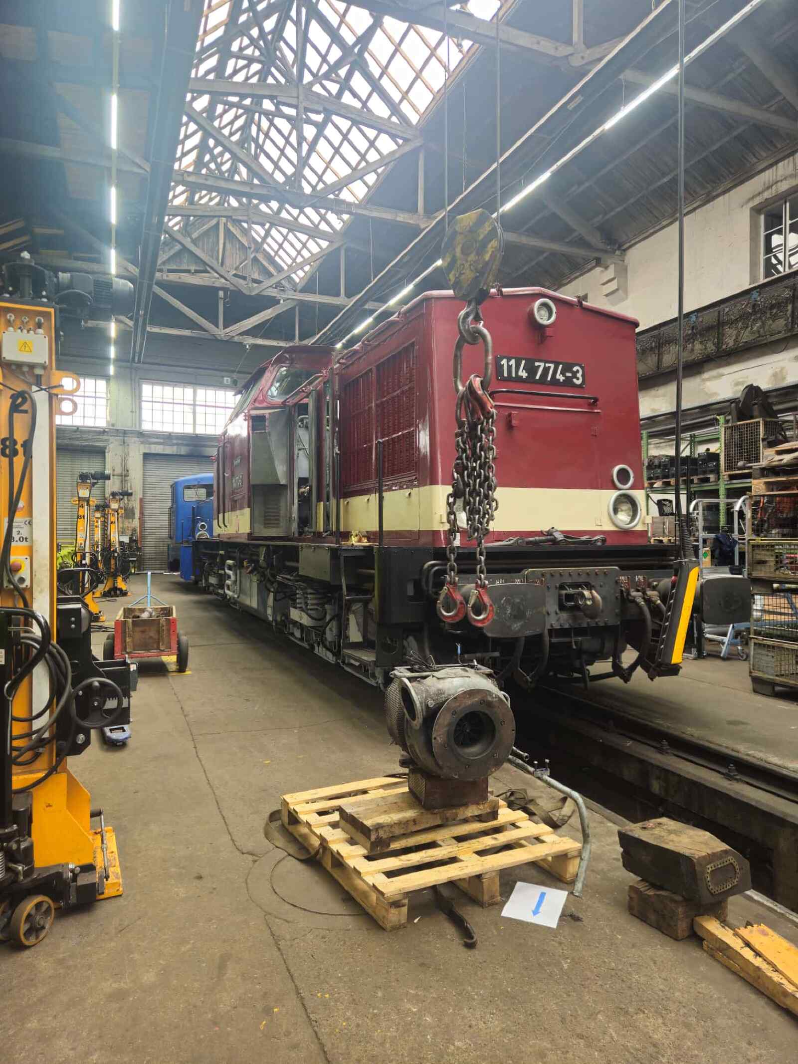 In den Jahren 1910 bis 1924 versuchten die deutschen Eisenbahnen, die bis 1919 noch in der Hoheit der Länderbahnen der einzelnen deutschen Königreiche oder Herzogtümer lagen, ihre bisher sehr unterschiedliche Güterwagenflotte zu vereinheitlichen und damit in der Unterhaltung und Verwendung effizienter zu machen. Das ersparte einerseits individuelle Ersatzteile. Andererseits waren die neuen Wagen von ihrer Ladefläche und den Beladungs- und Ladungssicherungsmöglichkeiten genormt. Firmen, welche die Wagen beladen wollten, konnten daher sicher sein, dass bestimmte Ladeflächen, -höhen und Tragfähigkeiten zur Verfügung standen, wenn sie einen Güterwagen zur Beladung bestellten. Es wurden bestimmte Wagentypen für unterschiedliche Verwendungszwecke von unterschiedlichen Herstellern nach gemeinsamen Musterblättern gebaut. Unser Güterwagen ist ein nach Musterblatt A2 gedecktes, zweiachsiges Fahrzeug, das über seitliche Schiebetüren beladen werden kann. Er hat ein Ladegewicht von 15 Tonnen bei einem Ladevolumen von 45,7 m3. Sein Achsstand beträgt 4.500 mm, seine Länge über Puffer lag bei 9.600 mm. Unser Güterwagen hatte augenscheinlich schon ein bewegtes Leben hinter sich: Wir können leider nicht mehr nachvollziehen, wann er gebaut wurde. Wir vermuten, dass er bis zum Ende des ersten Weltkrieges entstanden ist und dass seine Einsätze ihn in die Benelux-Staaten geführt haben. Augenscheinlich ist er dort nach dem ersten Weltkrieg verblieben, denn er besitzt heute Puffer französischer oder belgischer Herkunft. Nach dem zweiten Weltkrieg wurde er in Westdeutschland bei der Deutschen Bundesbahn eingesetzt und beendete seine aktive Karriere als Bauzugwagen in Garmisch-Partenkirchen. Zuletzt landete er in der dortigen Eisenbahnsammlung und wurde als Lagerraum genutzt. Aufgrund der guten Kontakte der Aktiven des Historischen Lokschuppens Wittenberge konnte der Wagen im Frühjahr 2010 als eines der ersten Exponate für das geplante Eisenbahnmuseum in Wittenberge erworben werden. Mit tatkräftiger Unterstützung der Feuerwehren in Garmisch und Wittenberge sowie eines Wittenberger Logistikunternehmers konnte der Wagen schließlich auf einem Sattelzug über die 730 Kilometer von Garmisch an seinen jetzigen Standort in Wittenberge gebracht werden. Dazu mussten allerdings die Achsen und Achsgabelstege vor dem Transport ab- und nach dem Transport wieder an-/eingebaut werden, um die zulässige Höhe des Straßentransports nicht zu überschreiten.