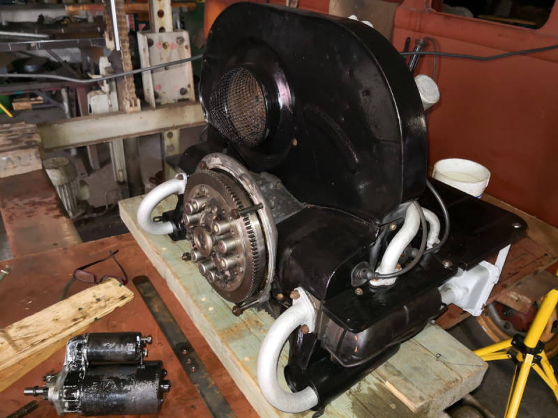 Endlich läuft auch wieder der VW-Motor des Breuer-Traktors, den ein anderer Kollege in Heimarbeit zum Leben erweckt hat. In nächster Zeit werden wird das Verschubgerät nun wieder zusammenbauen können.