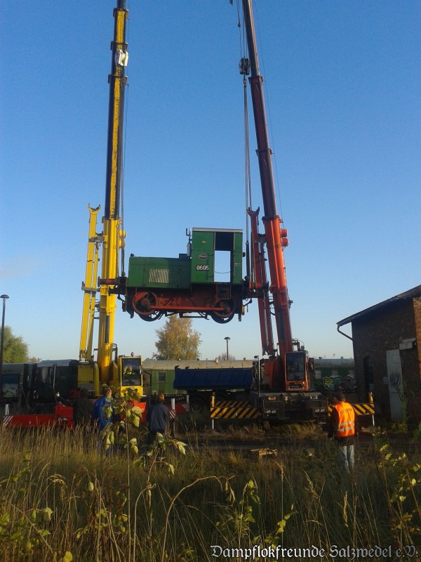 Verladen der Diesellok 0605 in Salzwedel